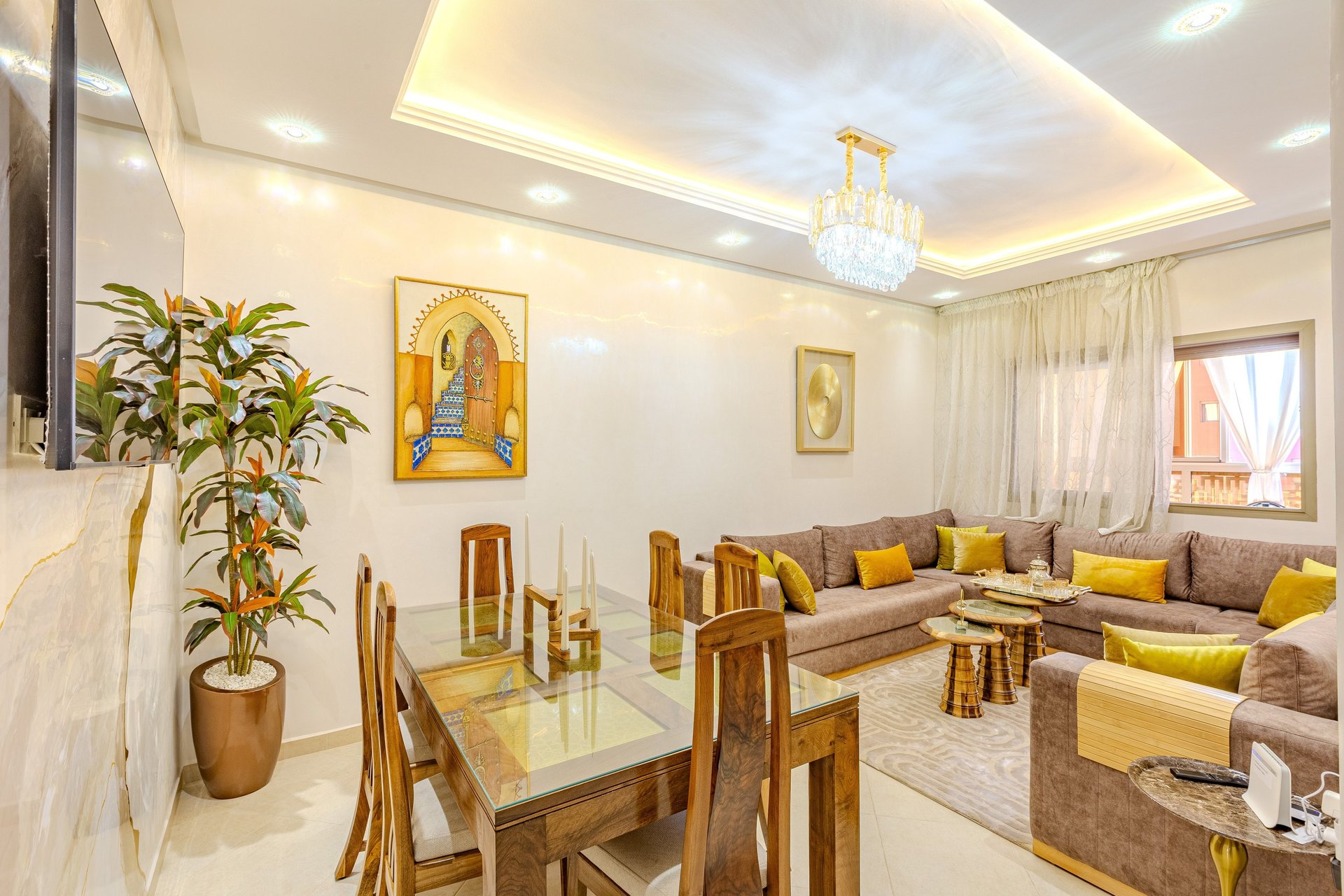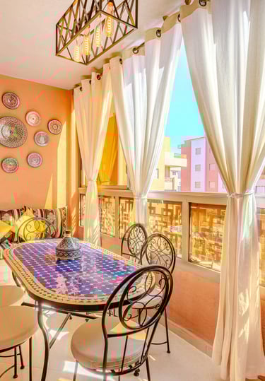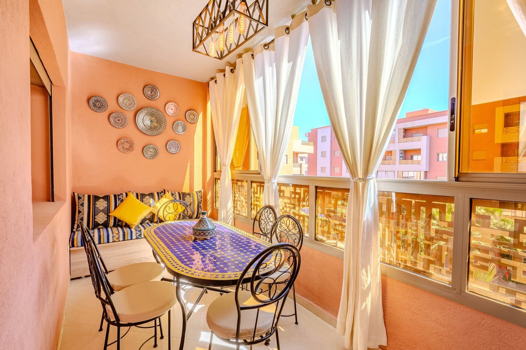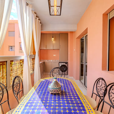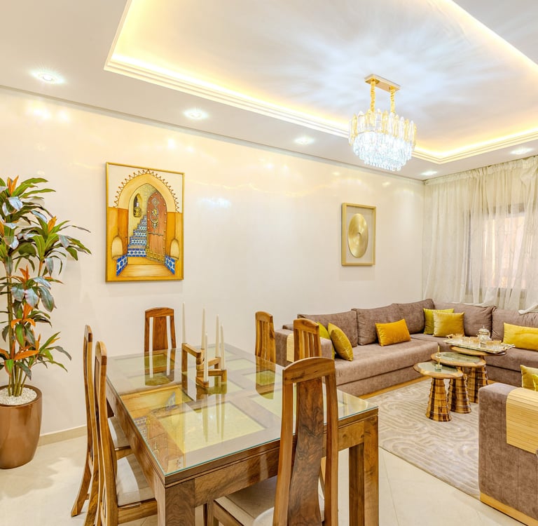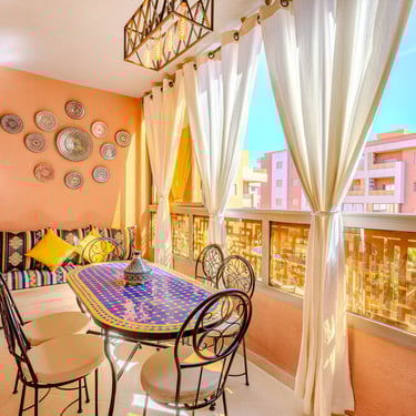 Un appartement authentique et chaleureux, idéal pour un séjour à Marrakech, alliant décoration traditionnelle, confort moderne et emplacement stratégique.