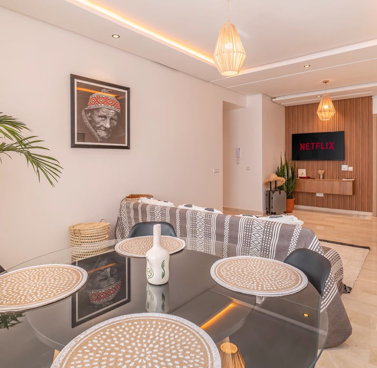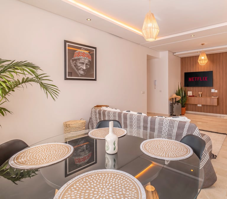 Un appartement rare, pensé pour un séjour citadin pratique et agréable à Marrakech.