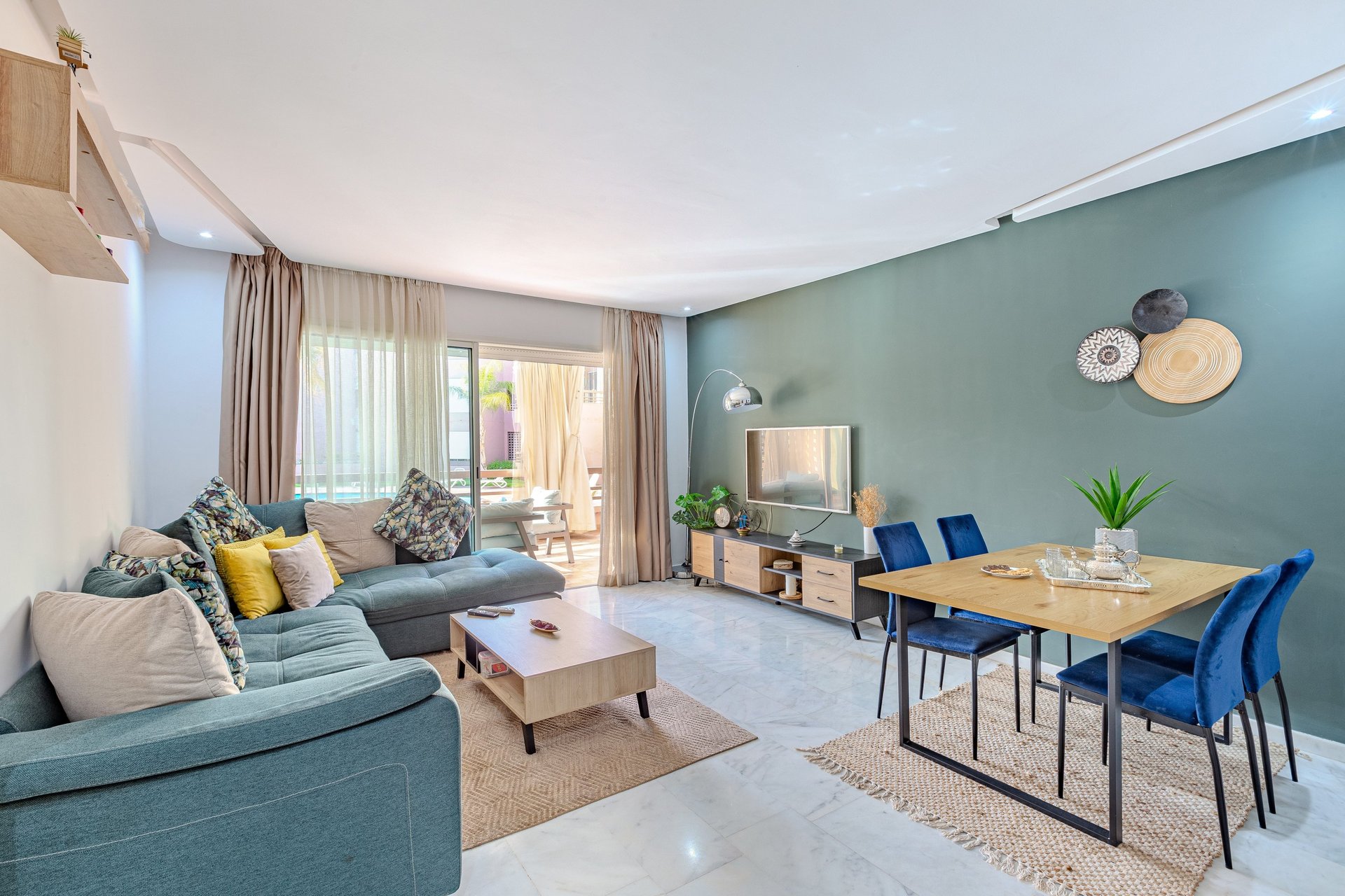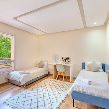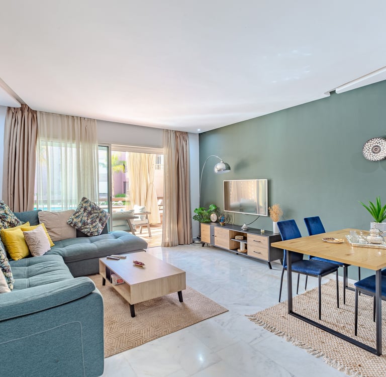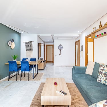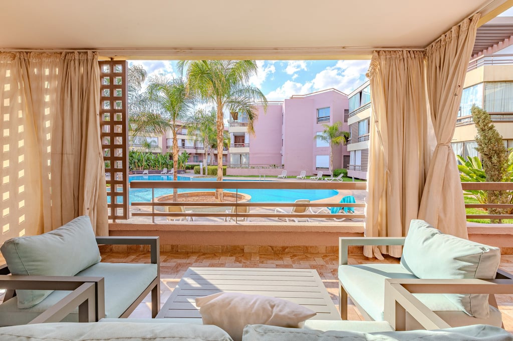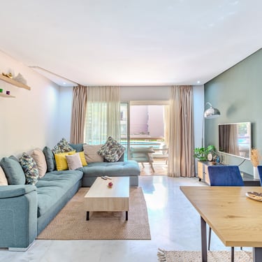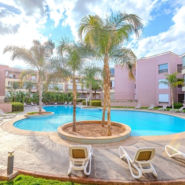 Un appartement séduisant par sa terrasse généreuse, sa décoration soignée et son cadre familial, idéal pour un séjour confortable à Marrakech, en couple, en famille ou pour un séjour professionnel.