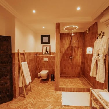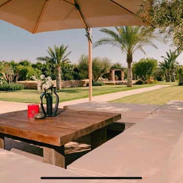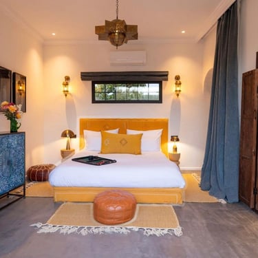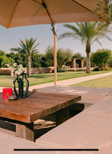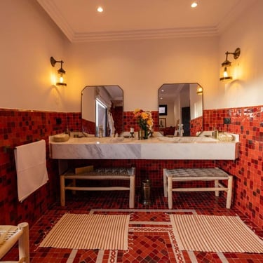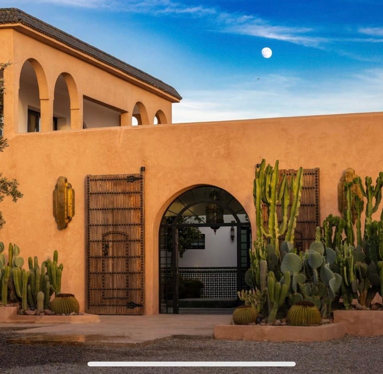 Située au kilomètre 11 de la célèbre route de l’Ourika, cette somptueuse villa traditionnelle a été entièrement rénovée en 2025 dans le respect de l’artisanat marocain et des standards contemporains du luxe.
